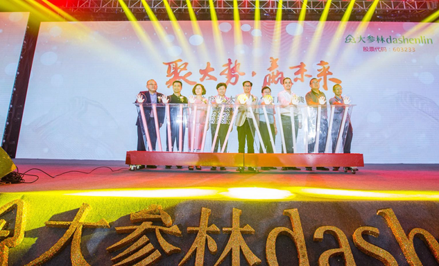 DB真人旗舰药业集团董事长刘景萍女士与大参林医药集团董事长柯云峰先生、中国医药商业协会执行会长付明仲女士等嘉宾共同开启了“聚大势•赢未来"大参林工商合作峰会的大幕。